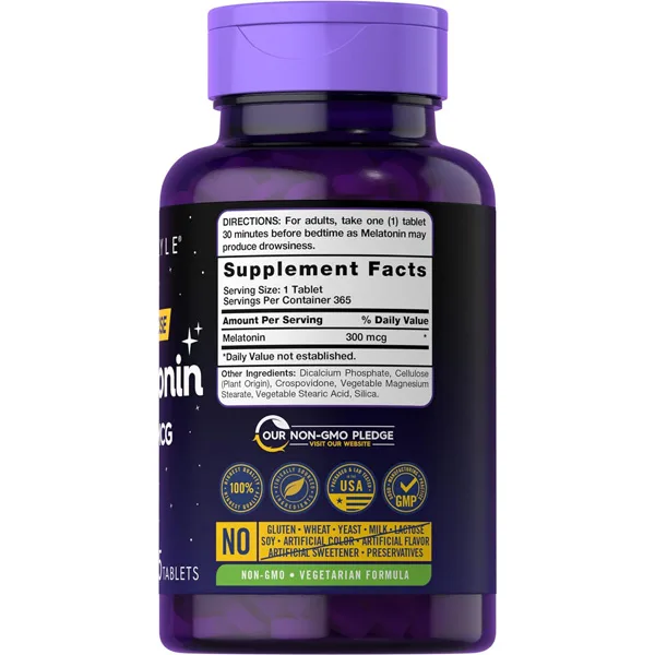 Carlyle Melatonin 1mg - 300 Low Dose Tablets - Drug Free Aid - Vegetarian, Non-GMO, Gluten Free