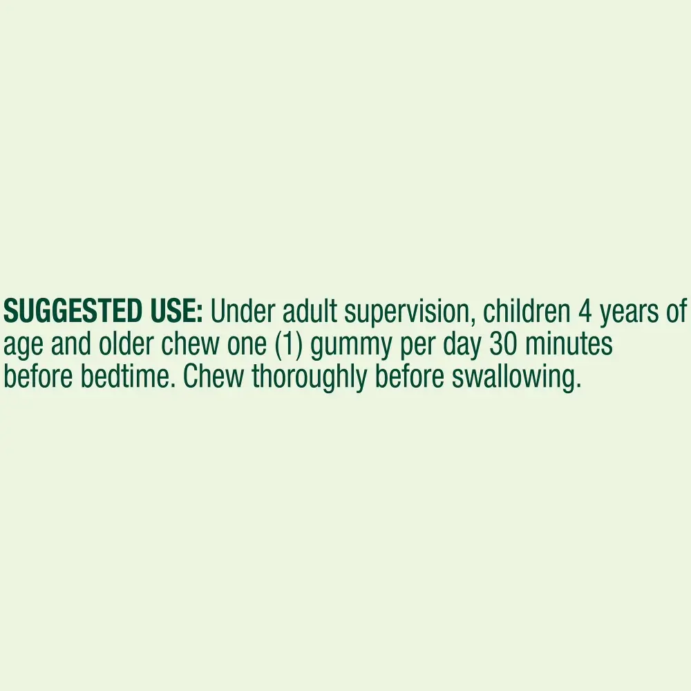 Spring Valley Kids Melatonin Gummies are a dietary supplement formulated to support restful sleep in children aged two and up.* Each vegetarian gummy contains 1 mg of melatonin that helps regulate sleep and wake cycles and may support more restful sleep in circumstances of altered sleep.* These great-tasting raspberry and blackberry flavored gummies are made with other natural flavors and are Non-GMO Project Verified, free from artificial preservatives and flavors, and gelatin-free for a vegetarian-friendly option. Help your kids sleep better with these Spring Valley Kids Melatonin Gummies.