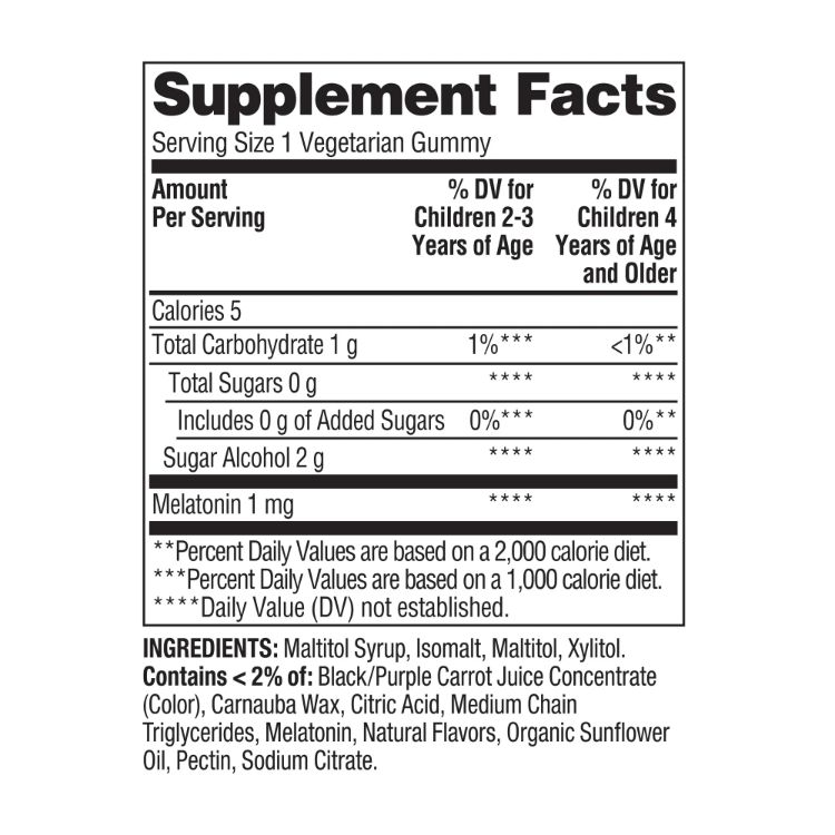 Spring Valley Zero Sugar Kids Gummies are a simple and tasty way to help support your child’s natural sleep routine.* Formulated with gentle, non-drug ingredients, these gummies are designed to promote restful nights and healthy sleep patterns.* Featuring delicious natural blackberry and raspberry flavors, along with other natural flavors, they’re a treat your kids will look forward to. These gummies are vegetarian, sugar-free, and made without any drugs. Children two years of age and older can take one gummy before or at bedtime to help wind down and relax.*